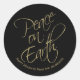 Peace on Earth Happy Holidays Elegant Black & Gold Classic Round Sticker