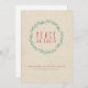 This design features the words "Peace on earth" in red capital letters inside of a green wreath set on top of a kraft paper-like background. Personalise your greeting and name below