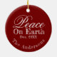 Peace On Earth Minimalist Script Christmas Red Ceramic Ornament