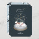 This whimsical chic " peace on earth " christmas and holiday greeting card features a snow globe with polar bears under the starry night sky with snow. There are a mum polar bear which is carrying a tree on her back, and a polar bear cub is carrying an ornament on a dark midnight blue / navy blue background with faux gold glittering stars and snow. The reverse side features a light slate blue background with patterns of polar bears, berries, and leaves. Personalise it for your needs. You can find matching products at my store.