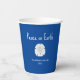 Christmas Party Beach Peace on Earth Holiday blue party paper cup, with a sand dollar and blue typography design. With customizable lettering, you can add your own text. A simple way to add a touch of the ocean to your holiday celebration.