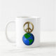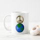 Clever Rebus style word puzzle design with a metallic gold peace symbol on top of a 3-d green and blue Earth globe to represent the popular holiday greeting "peace on Earth"