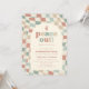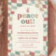 A graduation party invitation inspired by 70s retro design. This invitation features a warped chequerboard pattern that creates a groovy look - perfect for a retro hippie graduation party! The word "peace out" is in a retro font to complete the look.