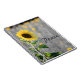 Enjoy this image of a field of sunflowers in black and white with the sunflower blooms in bright yellow in the summer sunshine while you write in your notebook or use it as your personal journal. The bold word of "Peace" to the right of the sunflower in grey lettering. A perfect gift to yourself or friend or loved one.