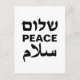 Peace Shalom Salaam white black typography Holiday Postcard
