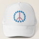 Artwork of dots that look like shiny marbles, in the shape of a Peace Sign, printed on a hat. This is so cute.
