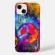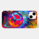 A bright colourful peace sign against an intense bold background. The design appears to have movement and is filled with wonderful colours including, periwinkle and electric blue, leaf green, fuchsia, hot pink, golden yellow, and tangerine orange. Easily add your name or initials to this unique modern phone case.