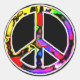 A brightly coloured peace sign, the universal symbol of peace, on a black background.