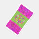 This paper guest towel flaunts a floral peace sign in shades of pink, turquoise, yellow, orange, purple, green and black. A border of my digital abstract "Petals" is on the top and bottom.