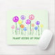 A colourful design of peace symbol "flowers" growing in a garden, with the message, "Plant seeds of peace". If you want to help promote peace in the world use this as a gentle reminder for us all to act in ways that foment peace.