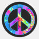 A peace sign made with my "Summer Palette" fractal. Colours include lime green, yellow, orange, pink, purple, aqua, and blue. Peace sign has an aqua-blue outline. Black background may be customised.