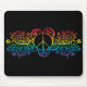 Rainbow coloured flowery peace sign on a black background Mouse pad.