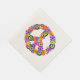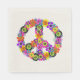 This paper napkin has a floral peace sign in shades of pink, turquoise, yellow, orange, purple, green and black.