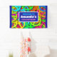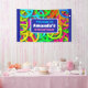 Birthday welcome banner with a sixties vibe. Cool peace signs in bright and vibrant colours featuring all the colours of the rainbow.