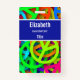 Personalised name tag with a sixties vibe. Cool peace signs in bright and vibrant colours featuring all the colours of the rainbow.