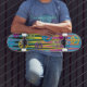 Colourful peace signs on a brightly coloured background is a fun skateboard design everyone will love!