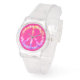 My granddaughter is graduating with her PhD on May 2nd and I can’t wait to give her this beautiful timepiece.  Such quality and workmanship. I’m glad I bought the clear because she can wear it with anything. Thanks so much for quality and fast shipping. Excellent.  Very bold print