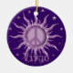 The sun and the symbol for peace celebrate your birth month in lavender, lilac, and purple with stars.