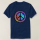 Peace sign tshirt with multicolor tie dye effect background.