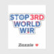 Create a visually striking sticker that features a dove carrying an olive branch, surrounded by bold, colourful text that reads "Advocating Peace to Prevent the Third World War." Incorporate symbols of unity, such as intertwined hands or a globe, to emphasize global solidarity. The design should evoke a sense of hope and urgency, reminding viewers of the importance of dialogue, understanding, and cooperation in fostering a peaceful world.