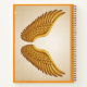 A simple, golden-winged design symbolising freedom and transcendence, set against a light dotted background, evoking elevation and the pursuit of limitless potential. "Original Image was generated by Meta AI. AI generated artwork. Licensed under CC BY-SA 4.0."