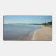 A peaceful stretch of shoreline along Big Traverse Bay on Lake Superior, where gentle waves meet soft sand under a bright blue sky. The curving beach and calm water capture the quiet, open beauty of Michigan’s Upper Peninsula.