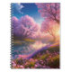 Immerse yourself in the tranquillity of this notebook's design, where the peaceful river takes centre stage. Embraced by lush green riverbanks, delicate pink flowers, and the ephemeral beauty of cherry blossoms, the artwork captures a serene moment in nature. The gentle flow of the river creates a soothing melody, while the vibrant colours harmonise in a captivating display. Let this digital artwork transport you to a world of solace and serenity, where the convergence of natural elements invites you to find peace within its pages.