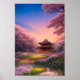 Escape to a serene world of beauty and tranquillity with this stunning digital art print. The small red-walled Japanese shrine takes centre stage, surrounded by a lush garden bursting with pink flowers, green grass, and delicate sakura trees. The delicate details and soft colours of this artwork will transport you to a place of calm and contemplation. Perfect for adding a touch of zen to any space, this poster will make a beautiful addition to your home or office. Bring a little bit of Japan into your life with this one-of-a-kind art piece.