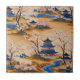 This tile is like a little window into a serene Asian landscape. The eye is drawn to the elegant blue-roofed pagodas and the soft pink of the cherry blossoms blooming around them. A gentle blue river curves through the scene, adding to the peaceful feeling. The warm background makes all the colours pop, creating a tile that's both pretty to look at and a stylish addition to your home.