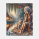 Peaceful riverside with a wolf friend fleece blanket