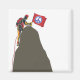 An alpinist with the "peace symbol" design at the edge of a high mountain