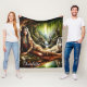 Peaceful scene: Native Indian and wolf Fleece Blanket