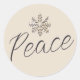 Add a touch of elegance to your holiday mailings and packages with this beautiful round sticker. The light background is adorned with a brushed champagne gold snowflake at the top, symbolising the serene beauty of the season. Beneath it, the word "Peace" is delicately scripted in a soft font, capturing the spirit of tranquillity and goodwill. Perfect for adding a heartfelt touch to your festive greetings, these stickers are a charming way to spread joy and warmth this holiday season. Use them to seal envelopes, decorate gift wrap, or adorn holiday favours. Elevate your holiday presentation with this captivating and meaningful design.