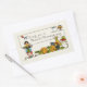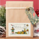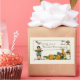 A cute Pilgrim is holding a turkey on platter with harvest scene of pumpkins and vines, a wild turkey, a gold haystack, a country cottage, and assorted fruits. Greeting: Wishing you a Peaceful Thanksgiving. Image of a Vintage Penny Postcard from 1919 without a border.