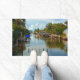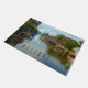 Relax with the calm, peaceful view on this Doormat. This original photograph by ZoeSPEAK is a long view of a canal in Estero Island, Florida. At the far end of the waterway, near the horizon, is the bridge to the mainland. The blue sky is filled with puffy white clouds, tropical trees and boats line the canal, and a reflection of the beautiful scene completes this picture of coastal living. There is text which reads “WELCOME”. This is set for you to personalise or delete if you prefer.