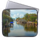 Stay cool with the calm, peaceful view on this 15” Laptop Sleeve. This original photograph by ZoeSPEAK is a long view of a canal in Estero Island, Florida. At the far end of the waterway, near the horizon, is the bridge to the mainland. The blue sky is filled with puffy white clouds, tropical trees and boats line the canal, and a reflection of the beautiful scene completes this picture of coastal living.