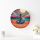 Peaceful Yoga Meditation Moonlight Sky Ocean Beach Large Clock