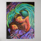 Colourful oil pastel of a sleeping couple watched over and protected by a spiritual bird of peace.
