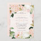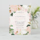 Design features a printed coloured with floral element in shades of peach and cream over greenery leaves and hydrangeas with tulips blooms on a light peach watercolor background.. Great for your wedding celebrations!
