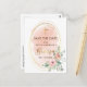 Elegant Baptism Save The Date Postcard. Design featuring watercolor peach, blush pink background and gold geometric oval frame and floral arrangement on the front with gold cross and Baptism in gold foil script. Add more details on the back of the postcard. To edit this template click customise further.