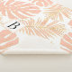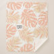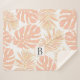 Peach and gold tropical leaves and monogram Sherpa blanket. This design features leaves of Split Leaf Philodendron (Monstera deliciosa) or Swiss Cheese Plant and palm leaves in peach with gold outline.