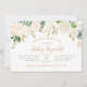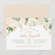 A warm, romantic take on the white rose and greenery wedding bridal shower invitation in a horizontal format. Gold text pairs beautifully with watercolor florals and lush eucalyptus leaves for an elegant garden aesthetic. The reverse features a soft peach polka dot pattern that adds a feminine finishing detail. All text and event details are easy to customise to suit your celebration.