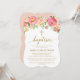 This peach and pink peony flowers baptism invitation card is perfect for an elegant girls baptism. The floral design features a beautiful arrangement of watercolor peonies in shades of blush and coral matched with dainty faux gold foil calligraphy.