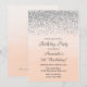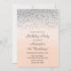 Birthday invitation with silver glitter look design and ombre peach orange watercolor background.