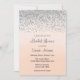 Bridal shower invitation with silver glitter look design and ombre peach orange watercolor background.