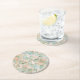Peach Aqua Green Tropical Leaves Round Paper Coaster