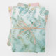 Peach Aqua Green Tropical Leaves Wrapping Paper Sheet