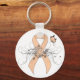 Peach ribbon with concentric circles, swishes, and a butterfly. The peach ribbon is associated with Endometrial Cancer Awareness in September and Uterine Cancer Awareness in September.