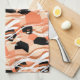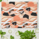 Peach Black White Abstract Pattern. Tea Towel