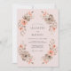 Soft peach and taupe blossoms create a romantic, ethereal arrangement on a blush background. This design evokes a dreamy, gentle mood perfect for a sophisticated affair. Delicate floral elements suggest a harmonious blend of nature's beauty.